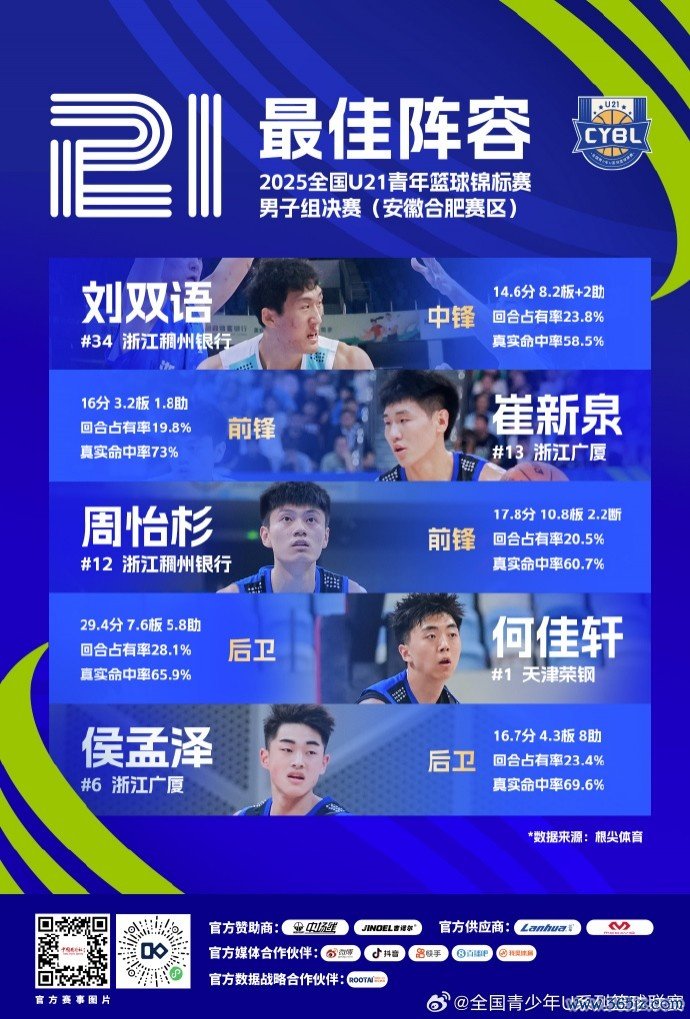 全国U21青年篮球赛 冠军赛 最佳阵形 公布!