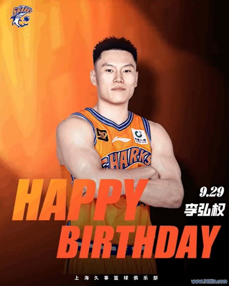 9月29日讯 今天是上海男篮球赛 员李弘权的24岁生日,上海队官博为其送上生日祝福。