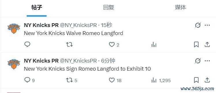 10月17日讯 尼克斯官方宣布,球队已经签下罗密欧-朗福德(Exhibit 10合同),6分钟后,他们又宣布裁掉了他。