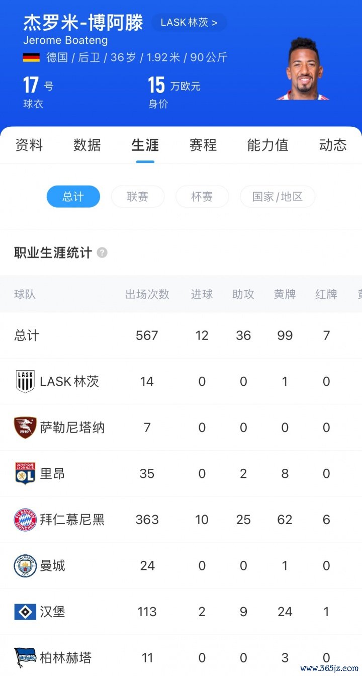 36岁的博阿滕上赛季为林茨出场14次,共计444分钟,他目前的身价为15万欧。