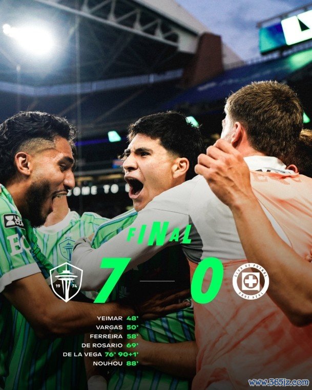 西雅图海湾人在联盟杯首轮对阵蓝十字,莱比锡红牛他们下半场依靠安德拉德、奥贝德-瓦尔加斯、热苏斯-费雷拉、德罗萨里奥、德拉维加(2球)以及图洛的得分 7-0狂胜对手收获开门红。