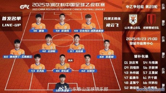 > - 中乙职业联赛 第23轮争冠组山东泰山B队主场作战 与成都蓉城B队杆位阵形 💪