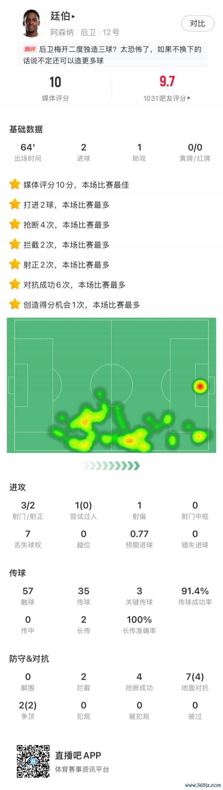 > - 翼锋卫😂阿森纳两名边卫热区图:一个在对方门前,一个在危险区域 边
