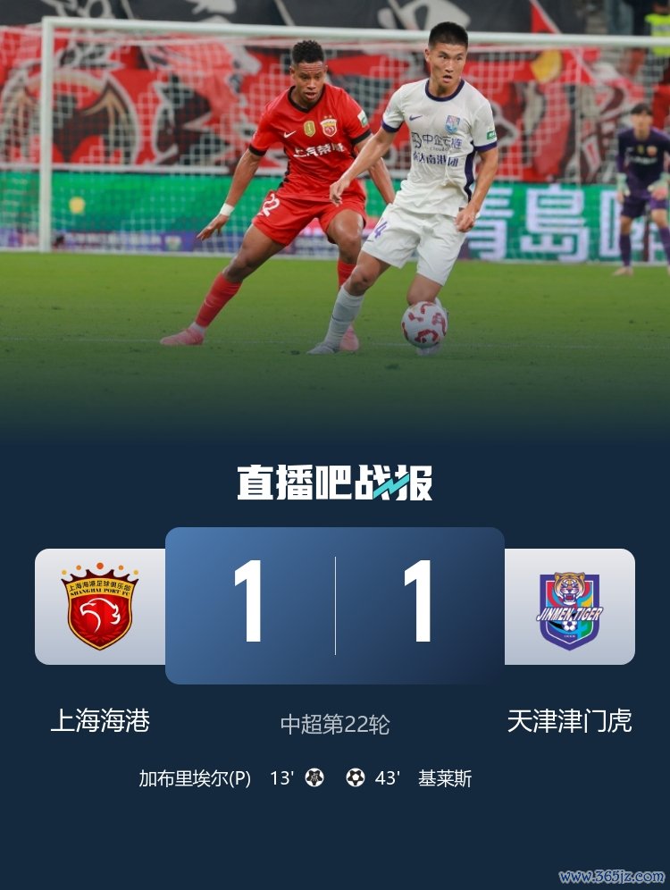 08月24日讯 中超第22轮,天津津门虎客场应战 1-1战平上海海港,终结了对海港的5连败。