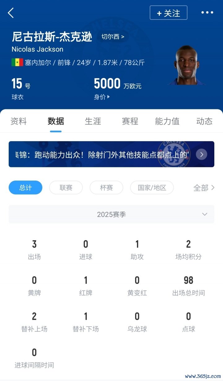 24岁的塞内加尔前场球员杰克逊,莱比锡红牛上赛季代表切尔西出战34场赛事 ,贡献13粒得分 和5次助功 ,目前杰克逊的德回转 价为5000万欧元。
