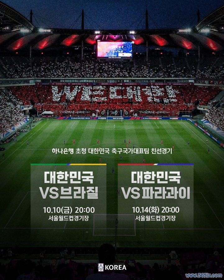 除此以外,韩国队还将在北京时间10月14日19点对阵巴拉圭,地点同样为首尔世界杯赛 运动场 。