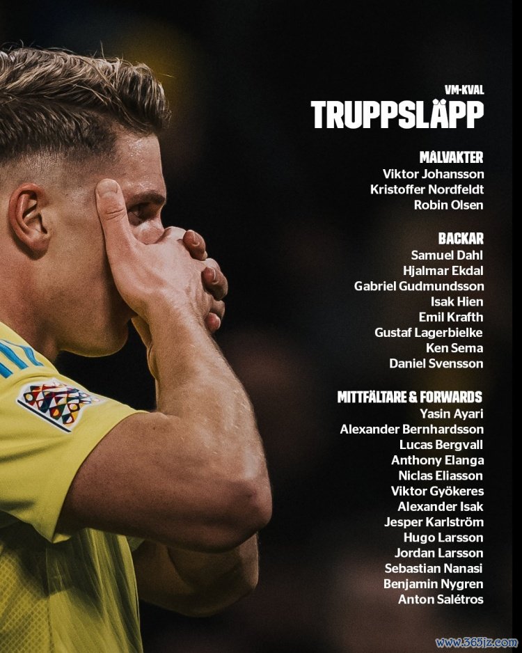 8月27日讯 瑞典公布新一期国家队大名单, 巴黎圣日耳曼无插件直播球队将在9月6日和9日的欧洲区世预赛中对阵斯洛文尼亚和科索沃。