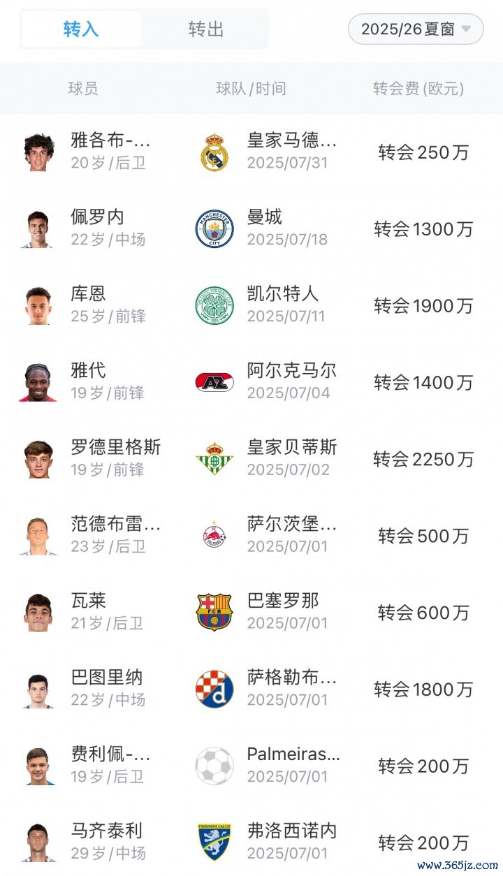 1、热苏斯-罗德里格斯:2250万欧 贝蒂斯→科莫