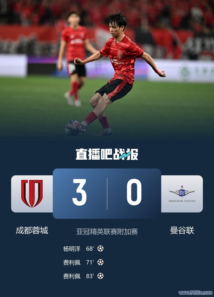 08月12日讯 刚刚,成都蓉城3-0曼谷联,成功晋级下一轮 亚冠精英职业联赛 正式比赛。