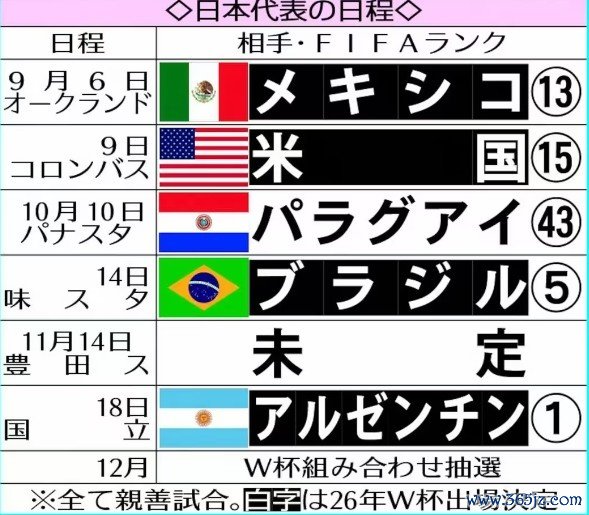 日本队近期赛前热身 赛安排