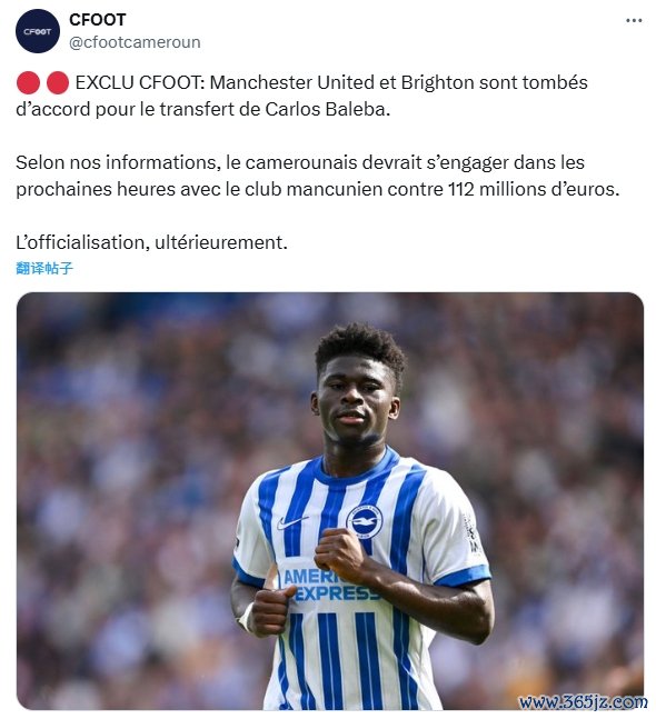 喀麦隆媒体CFOOT爆出独家猛料:曼彻斯特联和布莱顿就巴莱巴的转会达成一致。