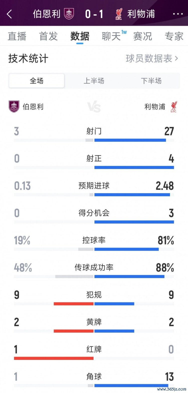 9月14日讯 在本轮英超,利物浦1-0险胜伯恩利, 布伦特福德直播平台以下为双方全场数据对比: