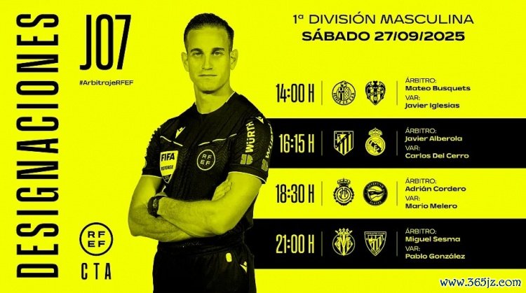 9月26日讯 西班牙足协官方公布了西甲联赛第7轮部分场次的裁判安排,其中,执法马德里德比焦点战的是哈维尔-阿贝罗拉-罗哈斯。