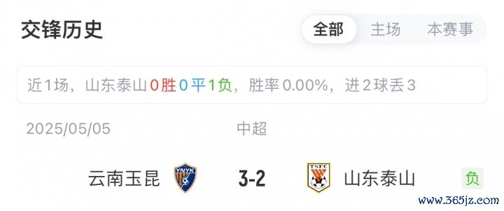 目前,山东泰山12胜6平7负积42分位列中超第6,近6轮比赛泰山4胜2平保持不败;云南玉昆8胜7平10负积31分位列中超第10,球队近期3负2平连续五轮不胜。本赛季双方首回合比赛,泰山遭玉昆让二追三逆转。