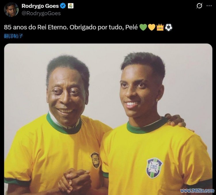 10月23日讯 不久前,罗德里戈晒出了自己与贝利的合照,纪念对方85岁生日。